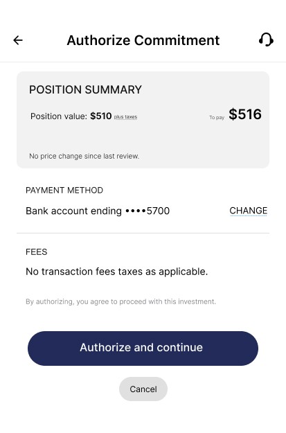 I separated the flow into distinct stages: Artwork Detail (exploration), Commitment Setup (unit selection), Review, and Authorization.